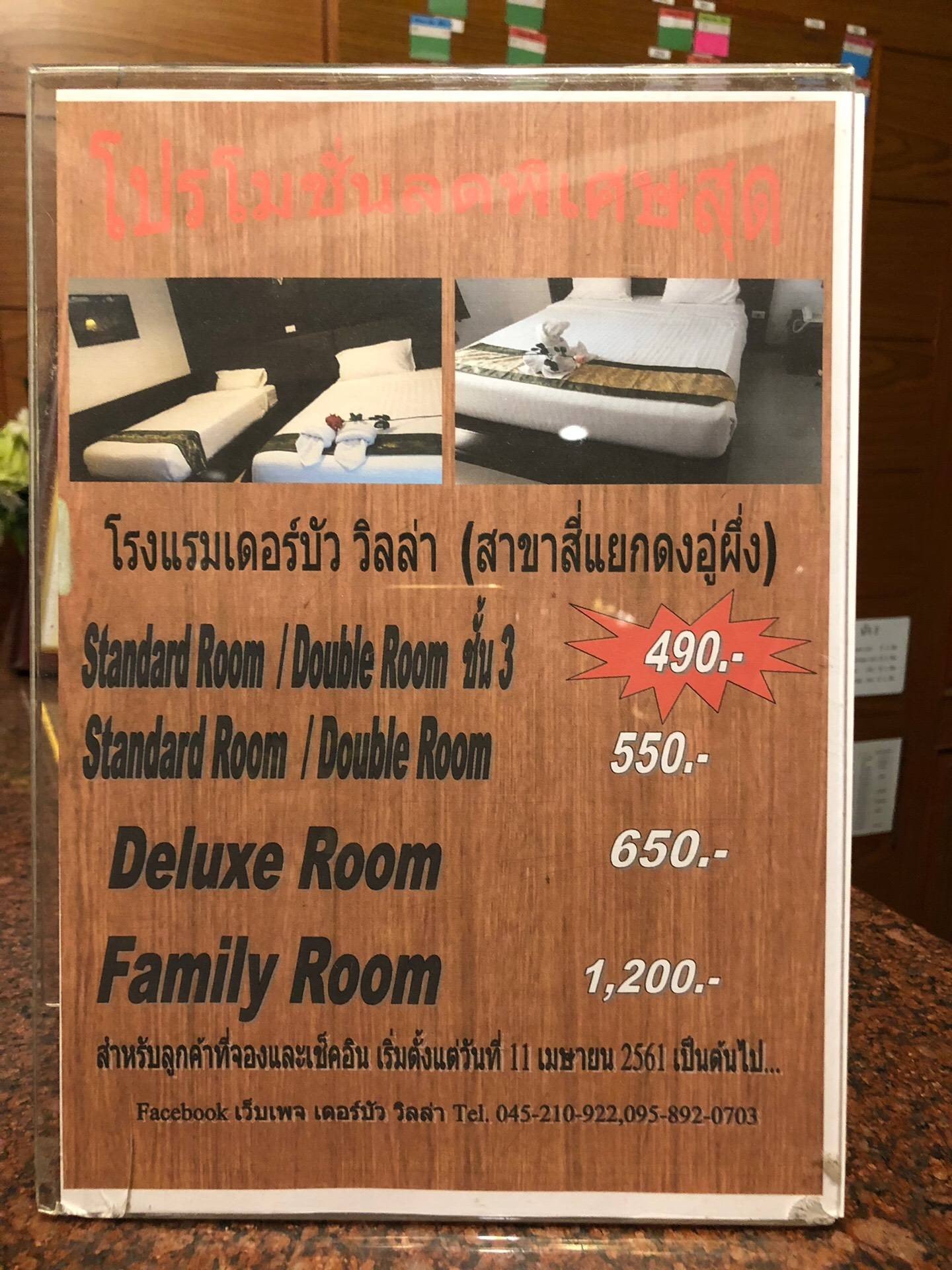 เดอบัว วิลล่า เป็นโรงแรมที่พักราคาประหยัด โรงแรมขนาดกลางมีสามชั้นไม่มีลิฟต์ ที่จอดรถกว้างขวาง อยู่ตรงแยกดงอู่ผึ้ง การเดินทางสะดวก ห้องพักกว้างขวาง *ฟรีอาหารเช้า 1 ห้อง / 2 ท่าน