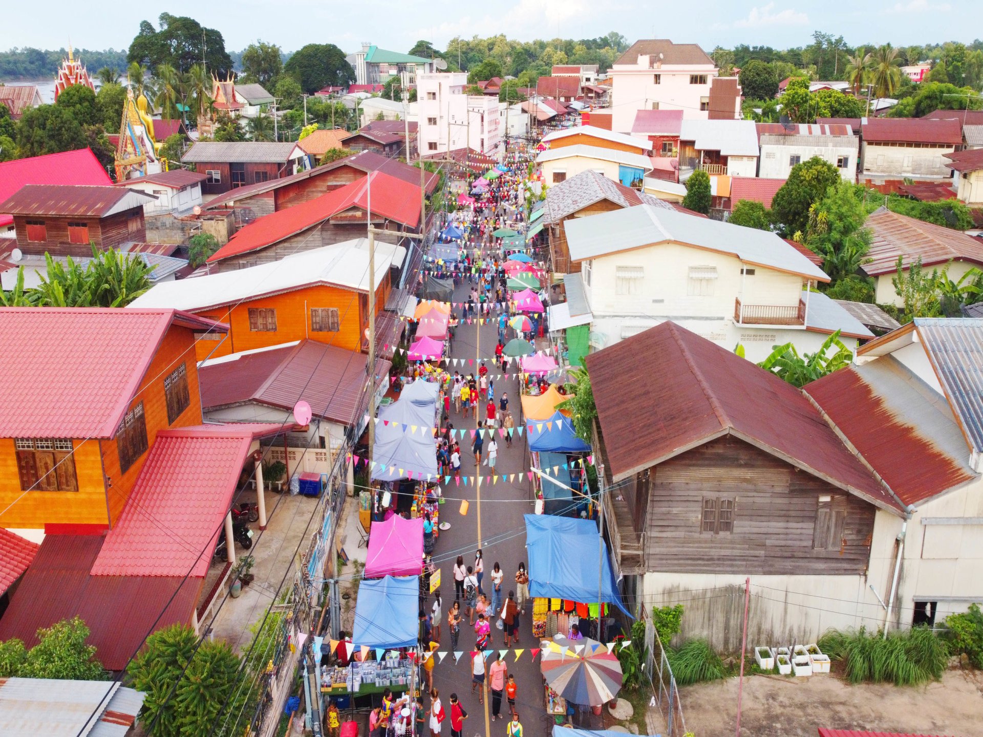 เป็นถนนที่เรียงรายไปด้วยบ้านไม้และร้านค้าเก่าแก่ที่ตั้งอยู่ริมแม่น้ำโขง มีร้านขายอาหารท้องถิ่นอร่อยๆ คาเฟ่สไตล์โฮมเมดเล็กๆ และร้านค้าต่างๆ ที่ขายของที่ระลึก และผลิตภัณฑ์ชุมชนอย่างเช่นผ้าซิ่นและผ้าทอ และยังเต็มไปด้วยมุมถ่ายรูปสวยๆ มากมาย โดยถนนบริเวณนี้จะจัดให้เป็นถนนคนเดินทุกเย็นวันเสาร์ตั้งแต่สี่โมงเย็นไปจนถึงสามทุ่ม