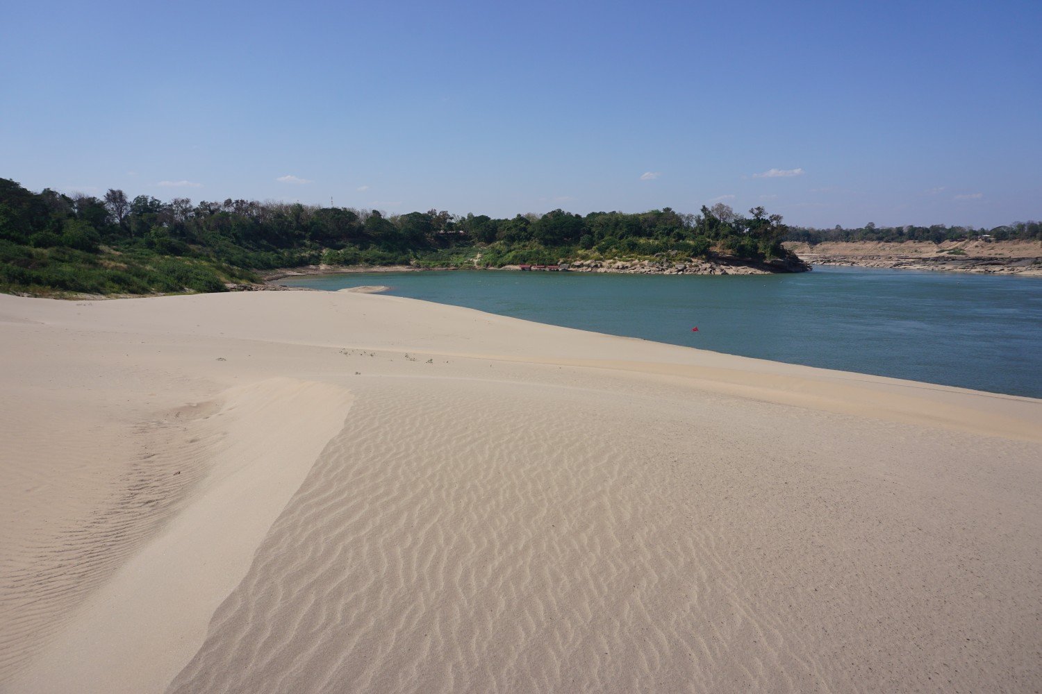 แม่น้ำโขงแป็นแม่น้ำอัศจรรย์ มีสิ่งอัศจรรย์มากมายซ่อนอยู่ใต้แม่น้ำซึ่งจะเผยให้เห็นยามหน้าแล้งที่น้ำลดระดับลงนับสิบเมตร และหาดทรายสูง แห่งอำเภอเขมราฐ ก็เป็นหนึ่งในสถานที่ที่เที่ยวได้เมื่อเข้าหน้าแล้งเท่านั้น ด้วยลักษณะภูมิประเทศเหมาะสม ทุกปีกระแสแม่น้ำโขงจะพัดเอาทรายมารวมกันไว้ที่นี่และพอแม่น้ำลดระดับก็จะได้กระแสลมพัดพาทรายเม็ดเล็กเม็ดน้อยมากองทับถมกันจนกลายเป็นเนินทรายริมแม่น้ำ แลดูคล้ายทะเลทรายขนาดย่อม เวลาฤดูท่องเที่ยวมาถึง จะมีการทำซุ้มร้านอาหารริมแม่น้ำ มีกิจกรรมเล่นสไลเดอร์บนเนินทราย นอกจากนี้ยังมีบริเวณที่เป็นแก่งหินสวยงามลักษณะคล้ายกับสามพันโบกให้เที่ยวชมถ่ายรูปอีก